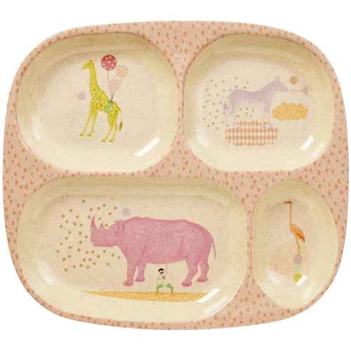 Rice Melamin Bambus Kinderteller mit 4 Fächern - Girls Animal