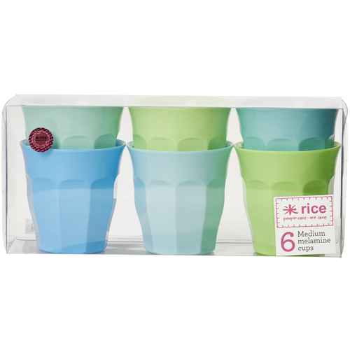 Rice Melamin Becher - Blaue und Grüne Farben - Medium - 6er Set