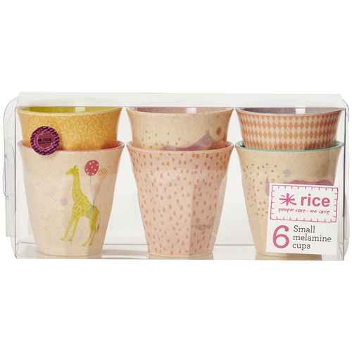Rice Box - 6 Melamin Kinderbechern Klein Bamboo in Girls Animal - 6er Set