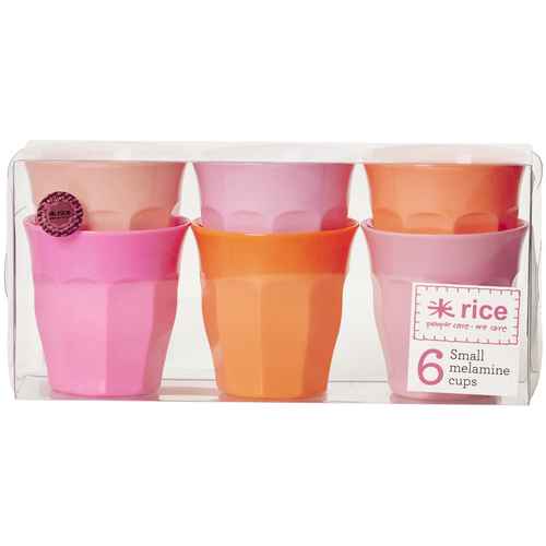 Rice Kleine Melamin Becher Curved Tasse Rosa und Orange - 6er Set