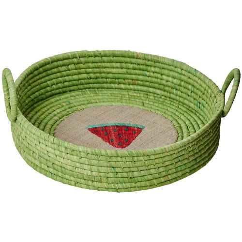 Rice Raffia Brotkorb - Rund - Fruit Stickerei Grün