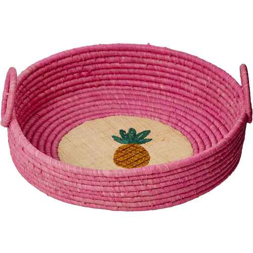 Rice Raffia Brotkorb - Rund - Fruit Stickerei Rosa