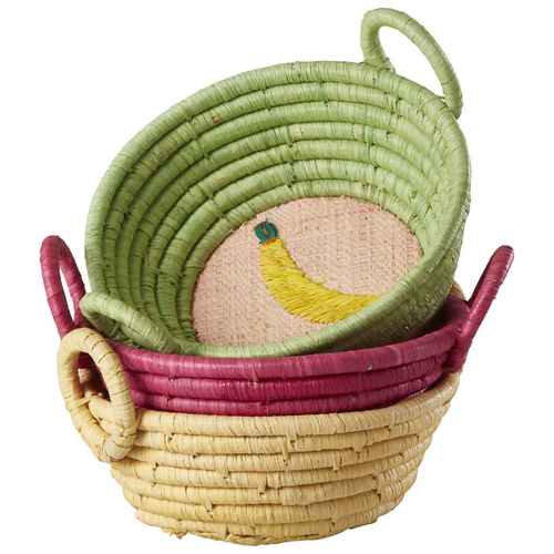 Rice Mini Korb - Rund Raffia Mini Basket - Fruit Stickerei 3er Set