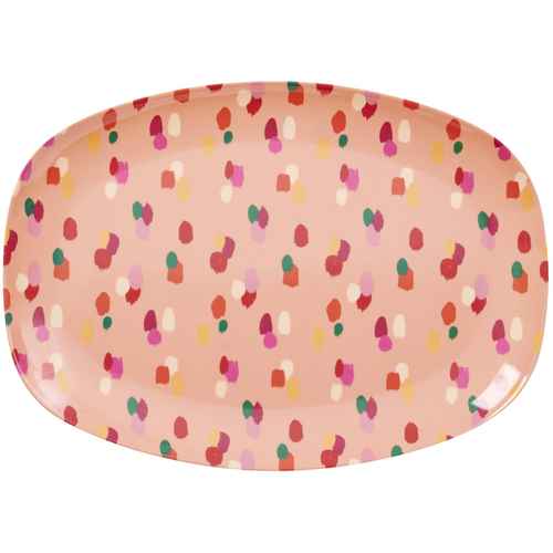 Rice Melamin Teller - Oval - Coral Dapper Dot