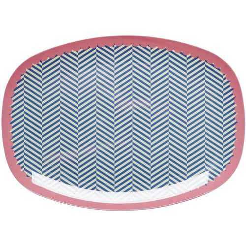 Rice Melamin Teller - Oval - Sailor Stripe Blue and pink