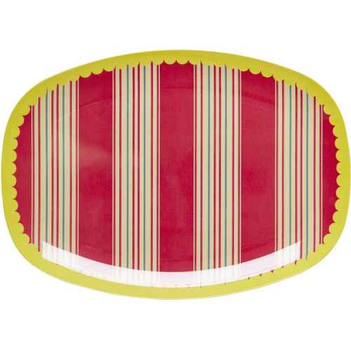 Rice Melamin Teller - Oval - Striped Red and Yellow