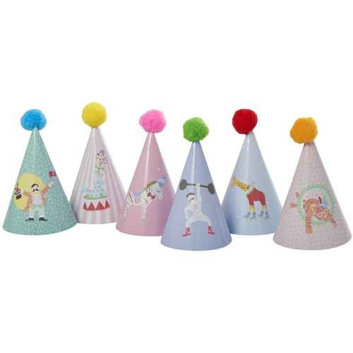 Rice Kinder Papier Party Hut - Bommel - Cirkus Thema - 6er Pack