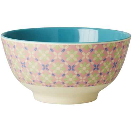 Rice Melamin Schüssel - Blumenkacheldruck - Dunstgrüne Innenseite - Medium