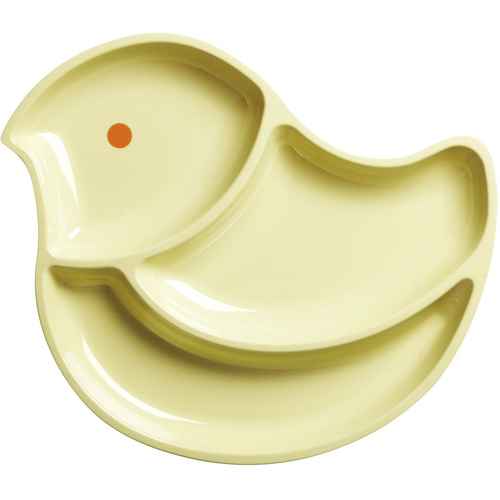 Rice Melamin Kinderteller mit 3 Fächern - Vogel - Pastellgelb