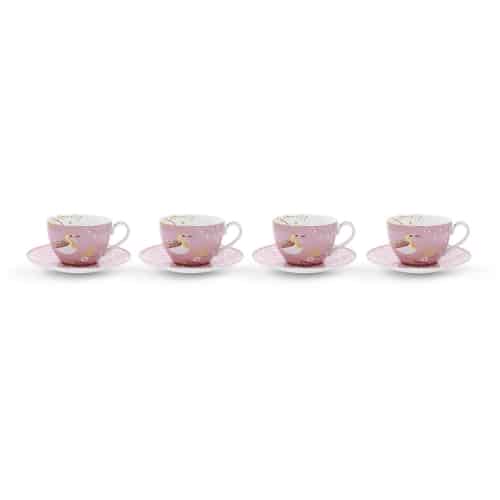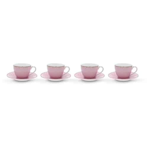 Pip Studio Floral Cappuccino-tassen & Untertassen Pink 4er Set