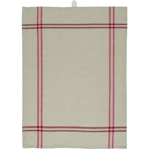 Ib Laursen Geschirrtuch Organic Beige mit Rot Streifen