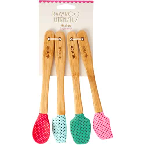 Rice Silikon Küchenspatel - Bambus Griff - 'Belive in Red Lipstick' Color - Klein - 4er Set