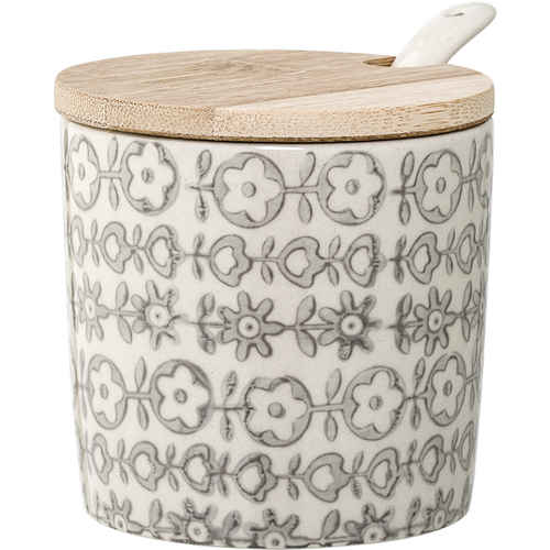 Bloomingville Karine Dose mit Holzdeckel und Löffel Grau Porzellan
