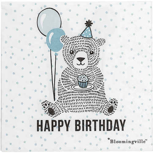Bloomingville Papierservietten Geburtstag Weiß m Hellblau 20 Stück