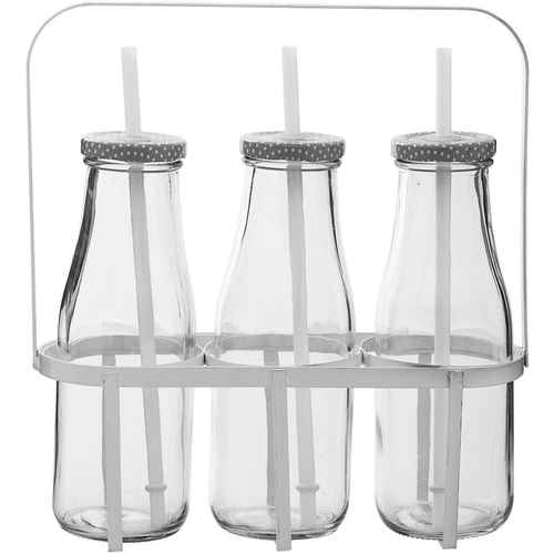Bloomingville Flasche mit Deckel & Strohhalm Clear/Grau/Weiß 450 ml 3er Set