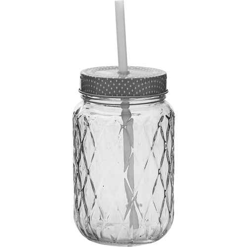 Bloomingville Flasche mit Deckel & Strohhalm Clear/Grau/Weiß 500 ml