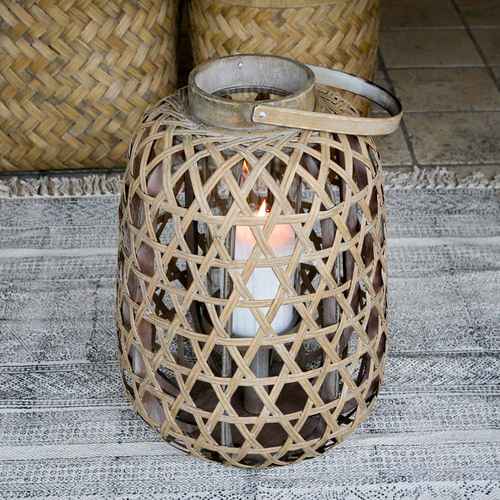 Chic Antique Laterne mit Glashalter Geflochten Natur H 26 cm