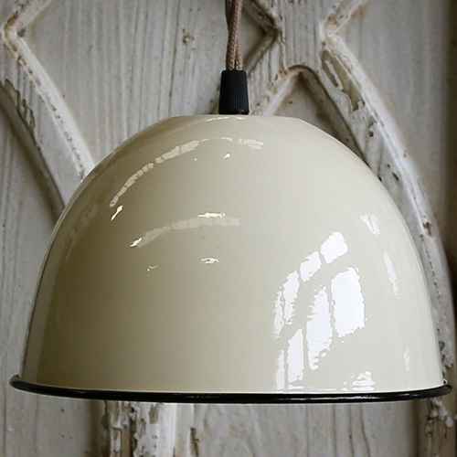 Chic Antique Vintage Emaille Lampe Creme mit Schwarzer Kante Ø 20 cm