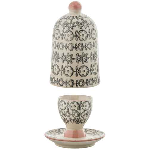 Bloomingville Eierbecher mit Deckel Cécile - Grau / Rose mit Blumen