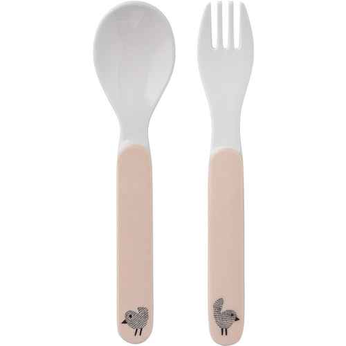 Friisenborg Melaminbesteck mit Gabel und Löffel - Gelbe Blüten / Weiße Punkte