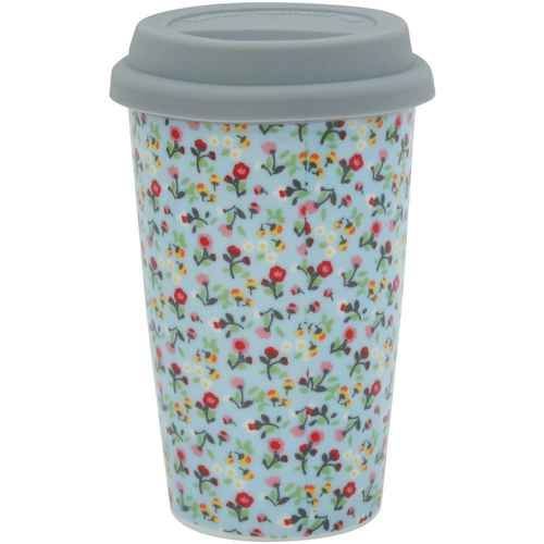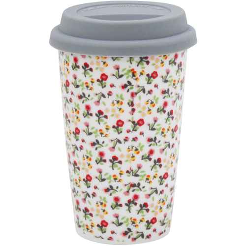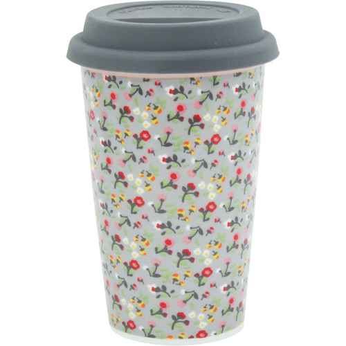 Krasilnikoff Travel Mug - Double Wall Thermo - Grey Mille Fleurs