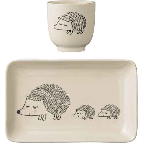 Bloomingville Tasse und Teller Set - Igel - Off White