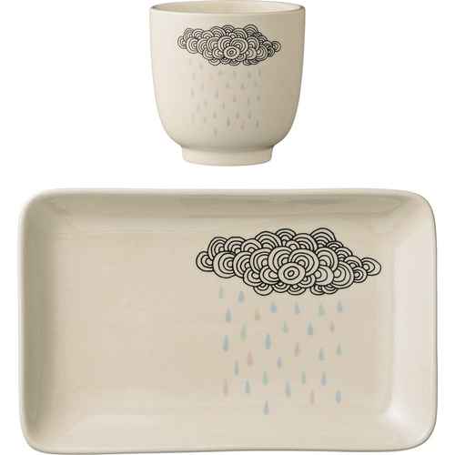 Bloomingville Tasse und Teller Set - Regenwolke - Off White