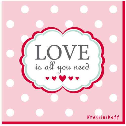 Krasilnikoff Papierservietten - Paper Napkin - Love ís all you need 20 Stück