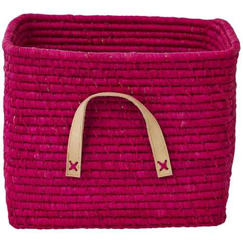 Rice Raffia Korb - Quadratisch - Ledergriffen - Fuchsia - Klein