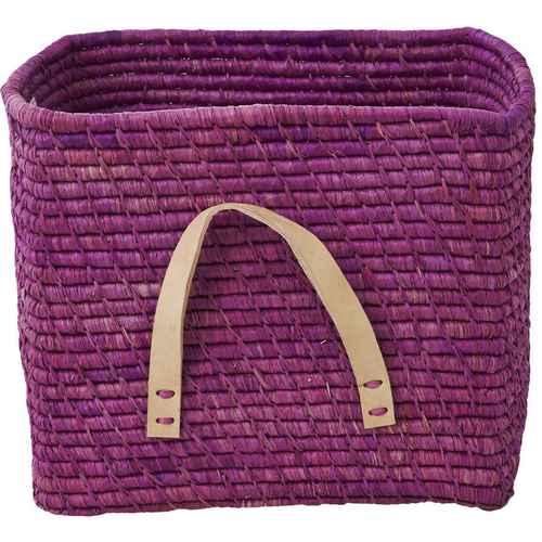 Rice Raffia Korb - Quadratisch - Ledergriffen - Lavender - Klein