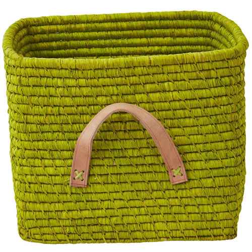 Rice Raffia Korb - Quadratisch - Ledergriffen - Anis - Klein