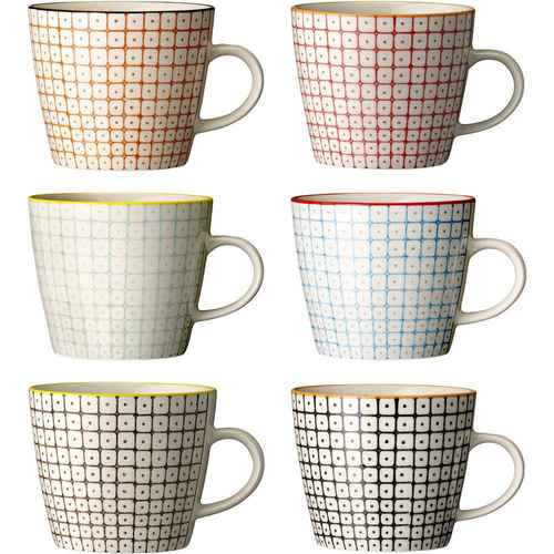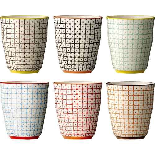 Bloomingville Geschirr Becher / Mug aus Porzellan mit Muster - 6tlg. Set