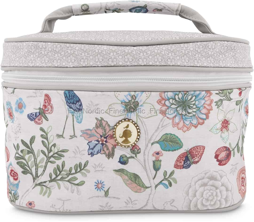 Der große Pip Studio Kosmetikkoffer Beauty Case Spring to Life Off-White schaut nicht nur wunderschön aus, sondern ist dazu auch sehr praktisch. Schnell lässt er sich, dank des Reißverschlusses, öffnen und schließen und am Griff haltend kann man den Kosmetikkoffer leicht von A nach B tragen. Die untere Hälfte des Kosmetikkoffers ziert ein farbenfrohes Design auf dem alles von Vögeln, über Blumen bis zu Schmetterlingen abgebildet ist. Die obere Hälfte des Spring to Life Kosmetikkoffers Off-White verziert ein schlichtes Blumenmuster. Natürlich darf auch das Pip Studio Emblem nicht auf dem Beauty Case fehlen. Der Pip Studio Kosmetikkoffer ist eine attraktive Aufbewahrungsmöglichkeit für Ihr Make-Up, Ihre Kosmetikprodukte und Pflegemittel. Er dient als schöner Hingucker in Badezimmerregal, und ist ein treuer Begleiter auf Reisen und Ausflügen.