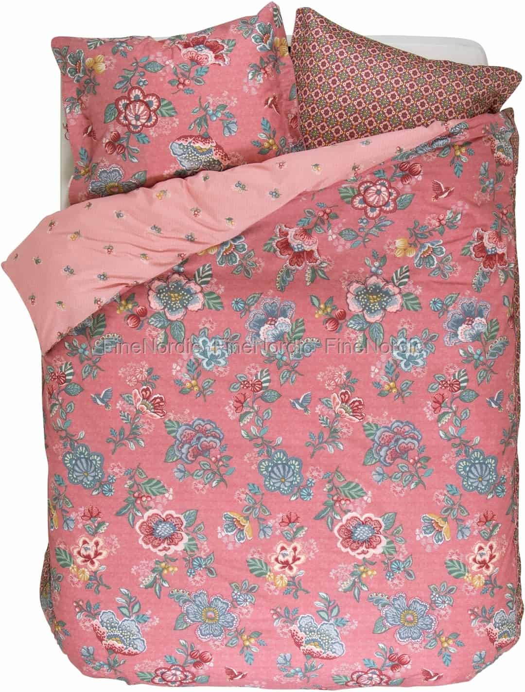 Diese gut aussehende und auffällige Bettwäsche von Pip Studio ist mit dem fantastischen Berry Bird Print verziert. Dieses farbenfrohe Muster aus großen Blumen, Vögeln und Beeren auf einem warmen rosa Hintergrund verleiht dem Schlafzimmer etwas neue Frische. Dieser Print wird mit einem attraktiven Diamantprint kombiniert und auf der Rückseite ist ein wunderschönes Beerenmuster zu sehen. Die Bettwäsche besteht aus weicher und geschmeidiger Perkal Baumwolle und kann bei 30 ° C in der Waschmaschine gewaschen werden. Sie fühlt sich gut an auf der Haut und ist für jede Jahreszeit geeignet. Sie wird mit einem passenden Kissenbezug geliefert. Verschönern Sie Ihr Schlafzimmer mit dieser Berry Bird Pink Bettwäsche von Pip Studio.