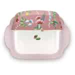 Wie viele Marienkäfer finden Sie in und auf dieser wunderschönen La Majorelle Pink Butterdose von Pip Studio? Die rosa Butterschale mit Deckel ist mit einem fantasievollen Design aus exotischen Blumen, Streifen und entzückenden kleinen Marienkäfern dekoriert. Wir lieben ihre stilvolle Form und goldenen Details. Servieren Sie die Butter auf ganz stilvolle Art und Weise mit dieser gut aussehenden Porzellan-Butterdose von Pip Studio. Sie kann sehr gut mit den anderen Geschirrteilen aus der äußerst ansprechenden La Majorelle Pink Kollektion von Pip Studio kombiniert werden. Schauen Sie sich gerne mal all die fantastischen Porzellanartikel an, die wir aus dieser eleganten Kollektion anzubieten haben. Die La Majorelle Pink Geschirrteile sorgen für einen schön gedeckten Tisch an den man sich immer gerne hinsetzen mag.