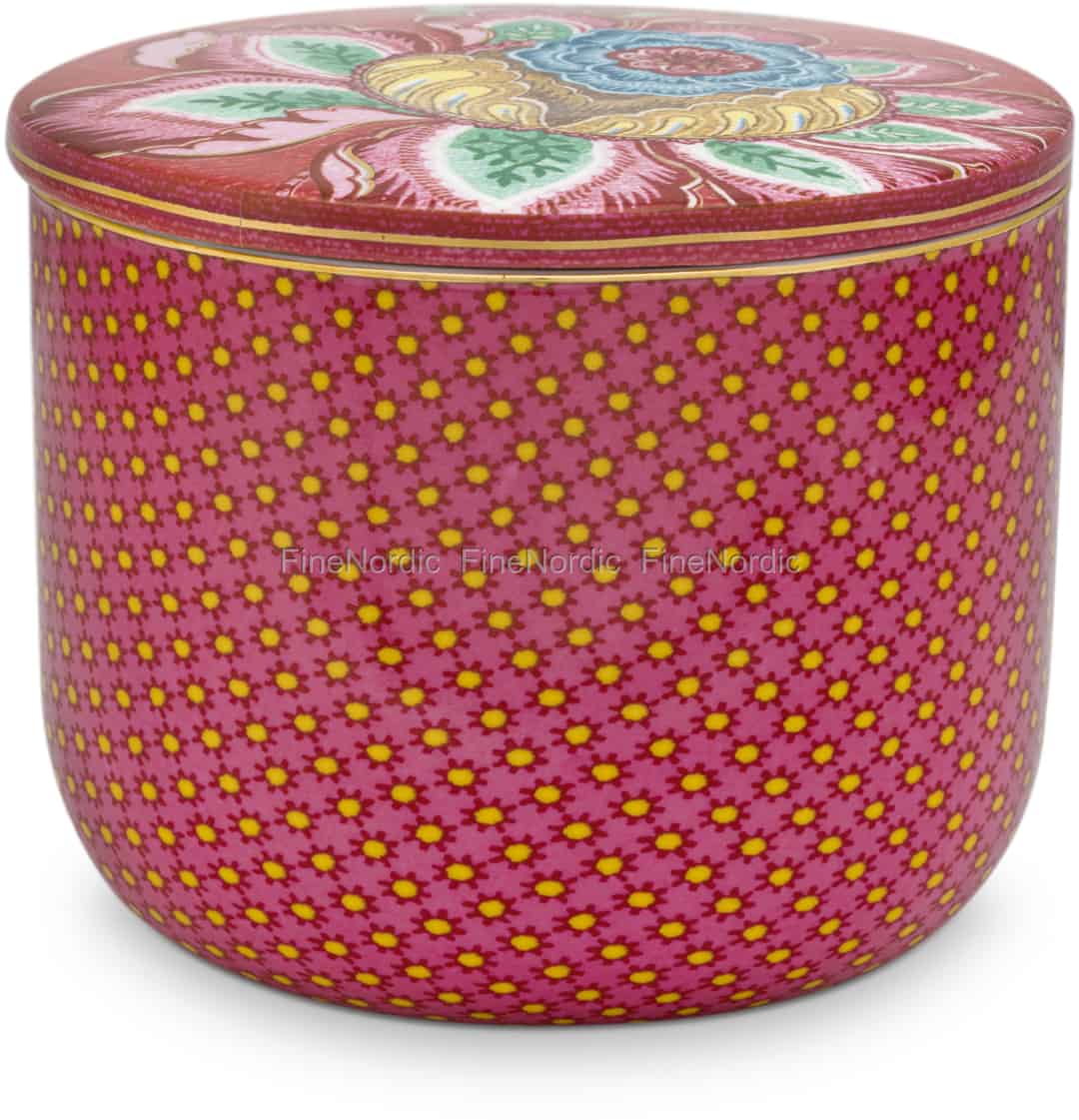 Die Twinkle Star Pink Cotton Ball Dose von Pip Studio ist eine schöne Aufbewahrungsdose für Ihr Badezimmerregal. Das Porzellan Döschen ist mit einem sich wiederholenden, geometrischen Design verziert, während der Deckel mit einer wunderschönen exotischen Blume geschmückt ist. Das harmonisierende Design und die goldenen Details zeichnen diese pinkfarbene Dose aus. Bewahren Sie Ihre Wattebäusche oder andere kleine Badutensilien sicher in diesem wunderschönen Porzellanbehälter mit Deckel auf. Die Pip Studio Twinkle Star Cotton Ball Dose ist auch in grün erhältlich.