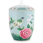 Lagern Sie Ihre Sachen lieber in einem schönen Porzellan Aufbewahrungsglas als in einem langweiligen weißen Plastikbehälter? Dann könnte diese Blushing Birds Blue Dose genau das Richtige für Sie sein. Sie ist mit exotischen Blumen, goldenen Details, einem Schmetterling und Vögeln dekoriert. Haben Sie schon entdeckt, wo sich der Schmetterling versteckt hält? Ein kleiner Tipp: Schauen Sie doch mal unter den Deckel. Der Hintergrund des Gefäßes hat einen eleganten Aufdruck und eine Porzellanrose ziert die Oberseite des Deckels. Dieses 1500 ml Gefäß bietet ausreichend Platz und kann in jedem Raum des Hauses verwendet werden. Sie können die Dose wunderbar mit den anderen Porzellansets der Blushing Birds-Kollektion kombinieren. Kaufen Sie sie für sich selbst oder verwenden Sie es als ein liebevolles Geschenk für eine gute Freundin.