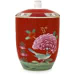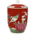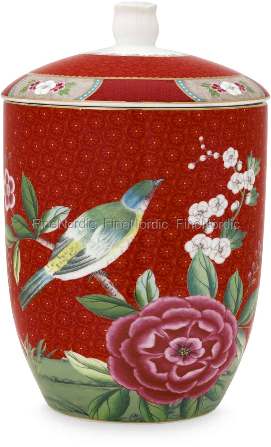 Das Aufbewahrungsglas Blushing Birds Red von Pip Studio ist mit exotischen Blumen, einem Schmetterling und einem Vogel geschmückt. Die goldenen Details verleihen ihm seinen letzten Schliff. Das Porzellanglas hat ein Fassungsvermögen von 1500 ml und kann gut mit den anderen Blushing Birds Red Produkten kombiniert werden. Der rote Hintergrund des Glases weist ein geometrisches Blumenmuster auf und der Deckel kann durch seinen schönen weißen Knopf in Rosenform ganz leicht hochgehoben werden. Wenn Sie unter den Deckel schauen, werden Sie dort auch eine kleine entzückende Überraschung vorfinden. Lassen Sie es auf Ihrer Küchentheke stehen und dort dient es nicht nur als Vorratsglas, sondern auch gleich als hübsche Dekoration. Wenn Ihnen dieses Muster genauso gut gefällt wie uns, dann schauen Sie sich gerne mal all die anderen wunderbaren Artikel der Blushing Birds Red Serie an und mischen Sie sie nach Ihrem Wunsch und Gefallen.