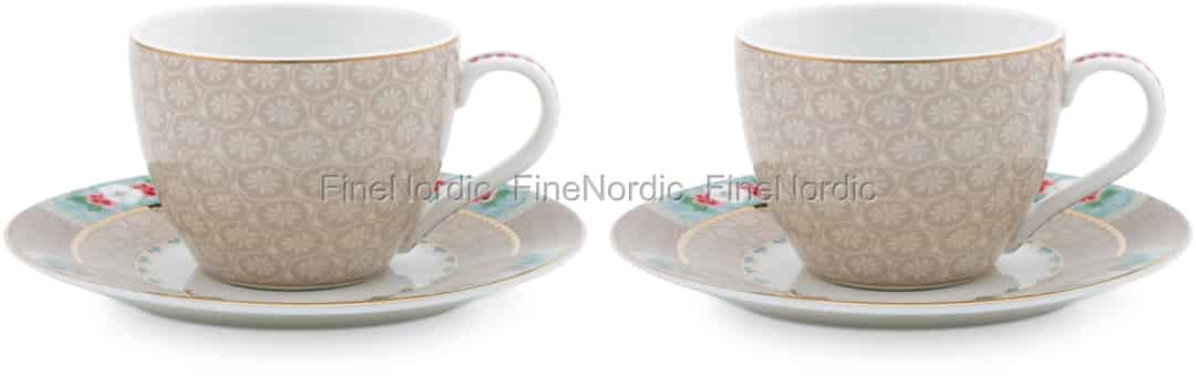 Pip Studio Espresso-tassen & Untertassen Blushing Birds Khaki 2er Set