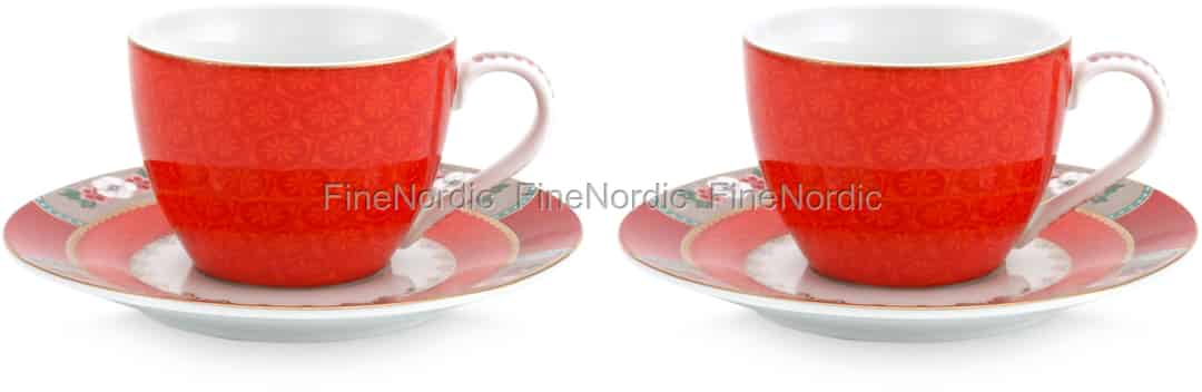 Pip Studio Espresso-tassen & Untertassen Blushing Birds Red 2er Set
