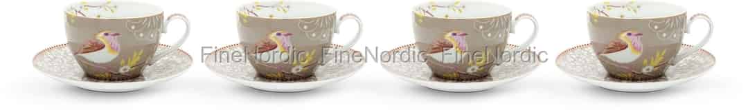 Pip Studio Floral Cappuccino-tassen & Untertassen Khaki 4er Set