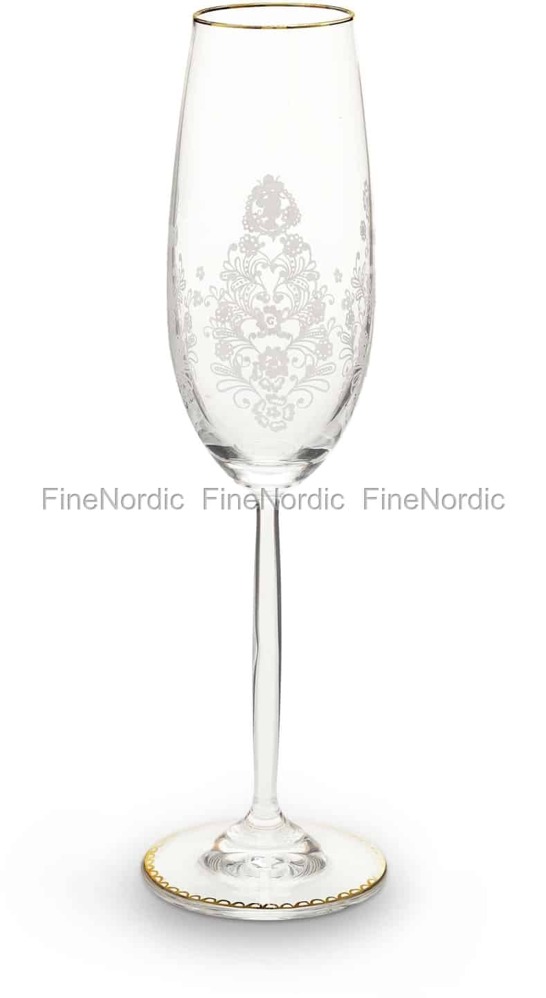 Festliche Anlässe verlangen festliche Gläser, oder etwa nicht? Der Tisch fängt schon an festlich auszusehen, sobald dieses hübsche Champagnerglas darauf gestellt wird. Das Glas ist mit weißen Akzenten und einem glänzenden goldfarbigen Rand verziert. Es hat ein Fassungsvermögen von 230 ml und bietet somit viel Platz für ein wenig Schampus. Es passt perfekt zu den anderen Gläsern der Pip Studio Floral Kollektion und auch zu den Pip Studio Floral Porzellanteilen. Jetzt kann das Fest starten!