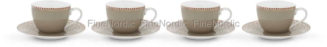 Pip Studio Floral Espresso-tassen & Untertassen Khaki 4er Set