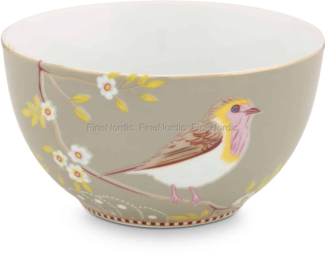 Eine Müslischüssel, eine Snackschüssel, eine Suppenschüssel, all das und noch viel mehr ist diese Early Bird Khaki Schüssel von Pip Studio. Diese Khaki Schüssel ist mit dem Early Bird Design dekoriert, das aus einem Vogel und einem raffinierten Blütendekor besteht, welches sich bis ins Innere der Schale fortsetzt. Die rot-weiß-gold-farbene gestreifte Pip Linie am unteren Rand der Schale verleiht ihr den letzten Schliff. Die Schale hat einen Durchmesser von 15 cm und besteht aus 100% Porzellan. Fügen Sie sie Ihrer Pip Studio Floral Sammlung hinzu oder nutzen Sie sie für ein tolles Geschenk für einen Pip Studio Sammler.