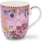 Wenn Ihnen die Farbe Pink gefällt und Sie auf der Suche nach einer neuen Tasse sind, dann brauchen Sie nicht mehr weiterzusuchen, denn hier sind Sie genau richtig! Diese Hummingbirds Tasse ist mit einem sehr hübschen Frucht- und Blumenmuster verziert. Entlang der oberen Kante und am Griff ist die unverwechselbare rot-weiß gestreifte Pip Linie mit goldenen Details zu sehen. Der rosa Hintergrund sieht in Kombination mit dem farbenfrohen Obst- und Beerendesign einfach wunderbar aus und der goldene Kolibri verleiht der Tasse den letzten Schliff. Wenn Sie dieses Muster mögen, dann werfen Sie doch bitte auch einen Blick auf die anderen rosa Hummingbirds Produkte, die wir in unserem Webshop verfügbar haben.