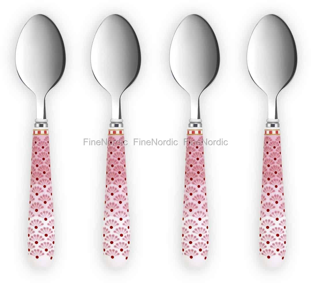 Laden Sie Ihre Freundinnen mal wieder zu einem Kaffeeklatsch ein und decken Sie den Tisch schön ein. Neben den Tellern und Tassen darf natürlich auch das nötige Besteck, wie zum Beispiel Teelöffel, nicht fehlen. Schauen Sie sich doch mal dieses 4-teilige Set mit Teelöffeln aus der Floral Kollektion von Pip Studio an. Der Floral Teelöffel besteht aus einem Metallteil und einem luxuriösen Griff, der mit einem sich wiederholenden Fächermuster verziert ist. Die Hintergrundfarbe des Griffs ist rosa und wird gegen Ende des Griffs allmählich heller. Der Griff ist zudem mit der markanten rot-weiß-goldfarbenen Pip Linie verziert. Wenn Sie jetzt noch das passende Porzellangeschirr dazulegen, dann steht einem gelungenen Kaffeeklatsch nichts mehr im Wege.