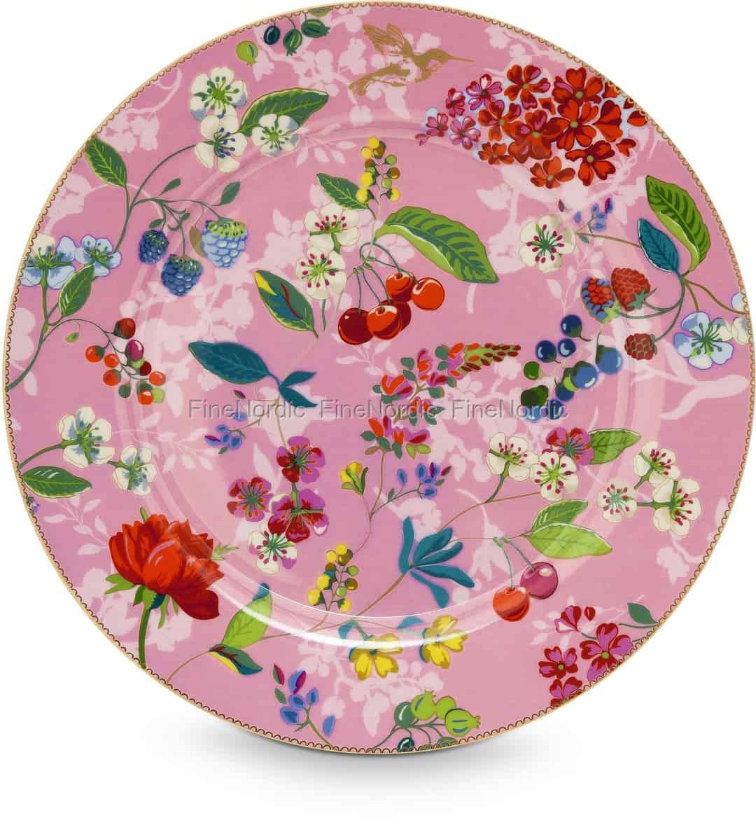 Decken Sie den Tisch schön für ein festliches 3-Gänge-Menü ein und starten Sie mit dem Hummingbirds Pink Unterteller von Pip Studio. Er ist ganz unverkennbar ein Teil der Floral Kollektion von Pip Studio, denn der Unterteller hat einen zartpinkfarbenen Hintergrund und ist vollständig mit dem Hummingbirds Muster verziert. Das besteht aus einem verspielten Print aus Obst und Blumen und einem goldfarbenen Kolibri. Der Teller hat einen Durchmesser von 32 cm und ist aus hochwertigem Porzellan gefertigt. Dieser große dekorative Unterteller bildet die Basis für Ihre Tischdeko und verschönert Ihren besonderen Anlass. Er ist auch in einer blauen und einer khakifarbenen Version erhältlich, direkt hier in unserem Webshop.