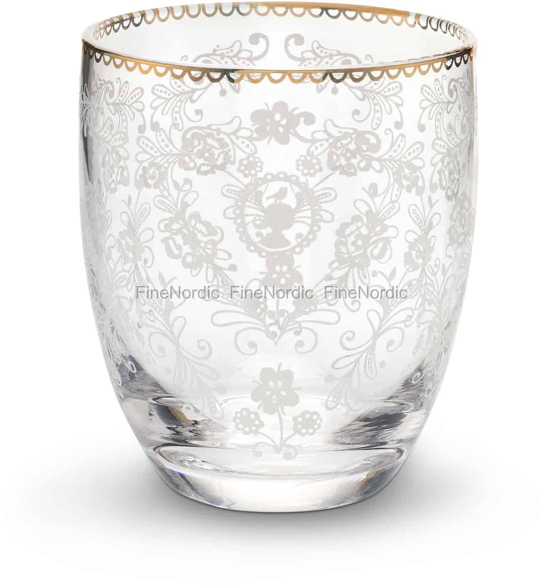 Was gibt es Schöneres, als an einem heißen Sommertag ein Glas kaltes Wasser zu trinken? Mit dem Pip Studio Floral Wasserglas trinken Sie ihr Wasser mit Stil. Das Glas hat ein Fassungsvermögen von 280 ml und ist mit einem schönen Blumenmuster und einem goldfarbenen Rand verziert. Wenn Sie genau hinsehen, entdecken Sie möglicherweise auch das Pip Logo inmitten der Blumen. Das Glas ist Teil der Floral Kollektion von Pip Studio und lässt sich gut mit anderen Geschirrteilen der Floral Kollektion kombinieren.