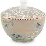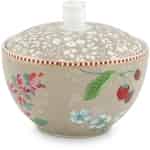 Bieten Sie Ihren Gästen etwas Zucker an, mit dieser schönen Hummingbirds Khaki Zuckerdose von Pip Studio. Sie ist mit einem sehr detaillierten Blumenmuster und goldenen Akzenten dekoriert. Der Deckel ist mit einem Griff in Form einer weißen Rose verziert und der obere Rand der Schale wird von Pips berühmter rot-weiß gestreifter Linie mit goldenen Details umrandet. Kombinieren Sie sie mit den anderen Geschirrartikeln aus der Floral Kollektion und Ihre Gäste werden begeistert sein, wenn Sie den attraktiv gedeckten Tisch sehen. Diese Hummingbirds Zuckerdose ist auch in einer blauen und rosa Version in unserem Webshop erhältlich.