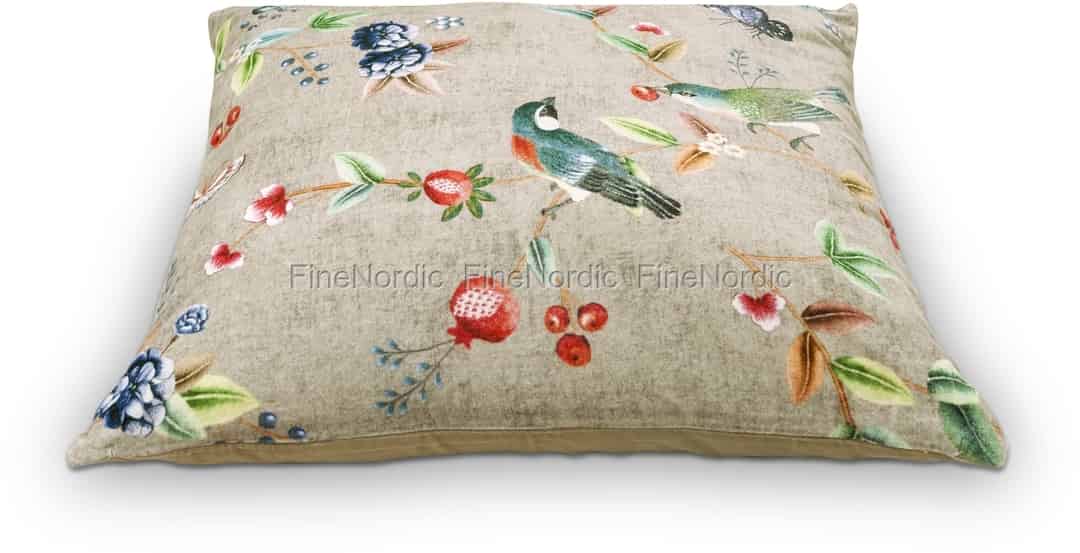 Das Pip Studio Khaki Birdy Kissen ist mit Vögeln, Schmetterlingen, exotischen Blumen, Zweigen und Blättern dekoriert. Es verleiht einer monochromen Couch oder einem Sessel etwas Farbe und dient als zusätzlicher Blickfang im Raum. Sie können dieses Samtkissen auch mit anderen Kissen kombinieren. Wählen Sie Kissen aus verschiedenen Materialien und Größen, um dem Raum ein wenig Harmonie zu verleihen. Das Khaki Pip Studio Kissen wird mit Füllung geliefert. Dieses quadratische Birdy Kissen ist auch in den Versionen Blau, Grün und Pink erhältlich.